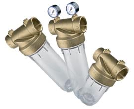 Filtri per acqua e contenitori per cartucce filtranti calibrati per alte pressioni di esercizio ed elevate temperature, in modelli e configurazioni differenti.